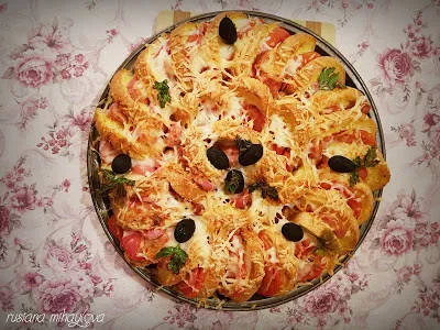Хлебно ветрило с домати, шунка, кашкавал и маслини