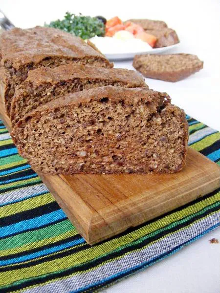 Хлябът на вид е като кекс. Сухата смес в хляба е от смлени орехови и слънчогледови ядки и смляно ленено семе и сусам. Течната част е от яйца, мътеница, вода и оцет.