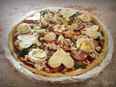 Хрупкава пица с колбас, сирене и яйца