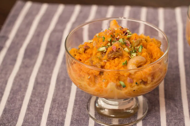 Индийска морковена халва с кашу и стафиди (gajar halwa)