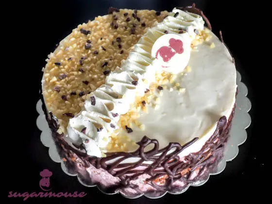 Тортата се състои от шоколадов блат с парченца банан, йогурт мус с крем сирене, ягодов йогурт мус, парченца карамелизиран ананас.