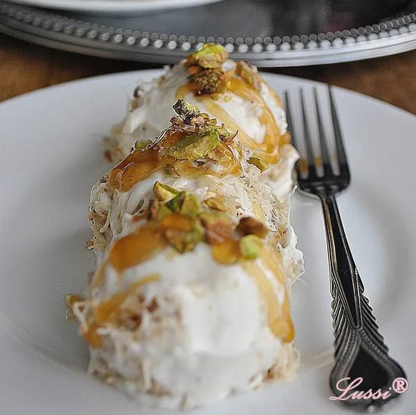 Запечени, карамелизирани кадаиф и орехи, обвити в пухкав и нежен крем