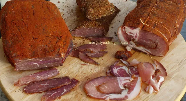 · 1 кг говеждо или телешко бонфиле · 1 кафена чашка сол (трапезна, но ако ползвате морска, удвоете количеството ѝ и добавете още 12 часа поне) · подправки* · лед