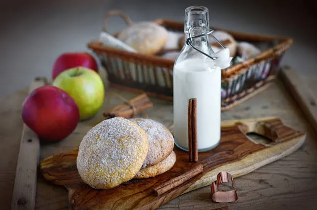 Ароматни бисквити с ябълкова плънка с чаша чай или мляко