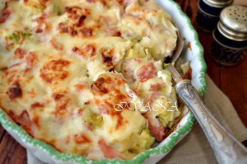 Карфиол на фурна с бешамел и шунка