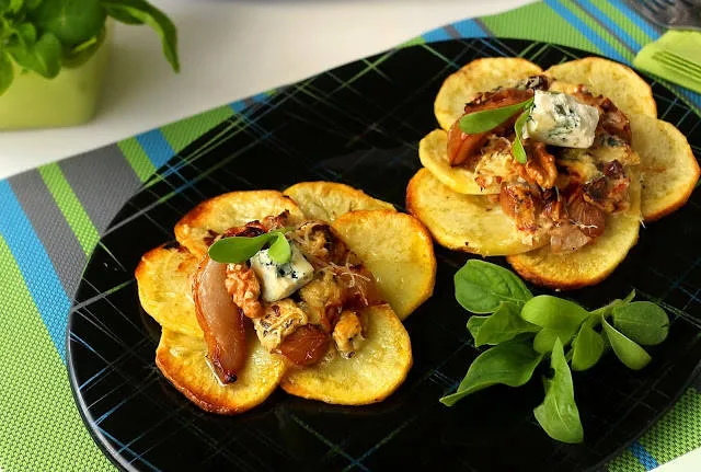 Идея от френската кухня - Двойката синьо сирене класически си партнира чудесно с круши, с орехи, а в случая има и картофи