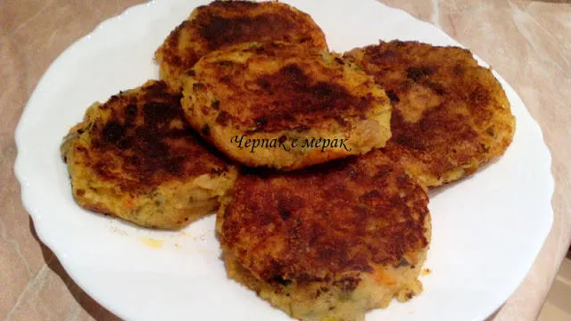 Картофени кюфтета с кромид, моркови и чушки