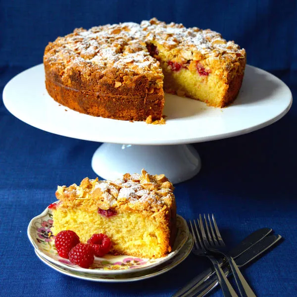 Кейк с бадеми и малини