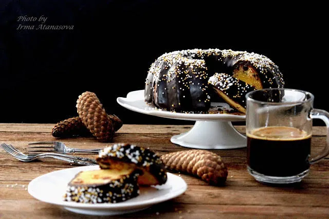 Кейк с фъстъци, боровинки и шоколадова глазура