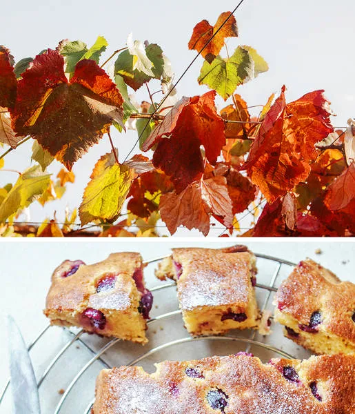 Този кейк, освен че съдържа цялото лято, събрано в ароматните гроздови зърна, притежава и чудесен баланс на съставките.