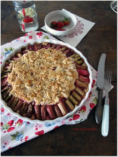 - 3 стръка ревен, почистен от жилите и маринован за около час с 2 суп.лъж. захар