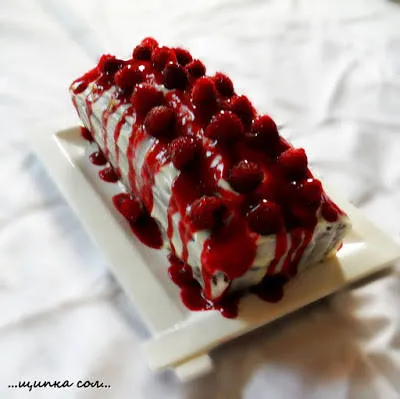 Богат кекс с глазура и малини