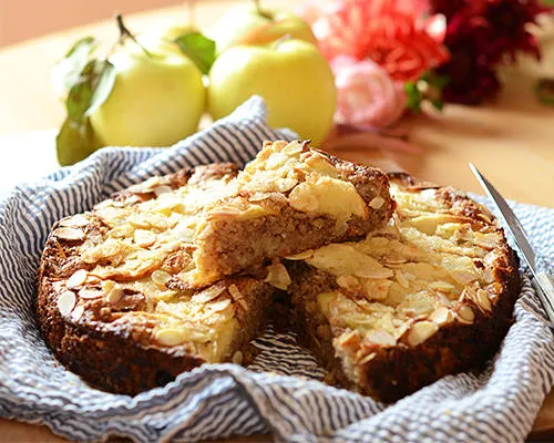 Вкусен и сочен сладкиш с ябълки. Ядките му придават неповторим есенен аромат, а бадемите го превръщат в неустоим десерт, прекрасен за сутрешното ви кафе.