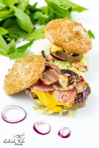 Един такъв бургер е доста калоричен и с много мазнини. Типична кето храна. По нищо не отстъпва на бургер с хлебче от бяло брашно.