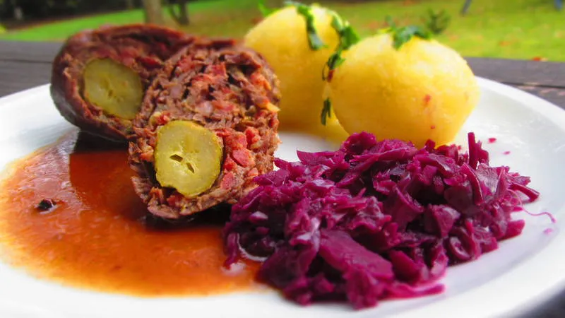 Няма начин да посетите Германия и да не опитате вкусните говежди рулца с гарнитура от червено зеле, кнедли и вкусен винен сос!