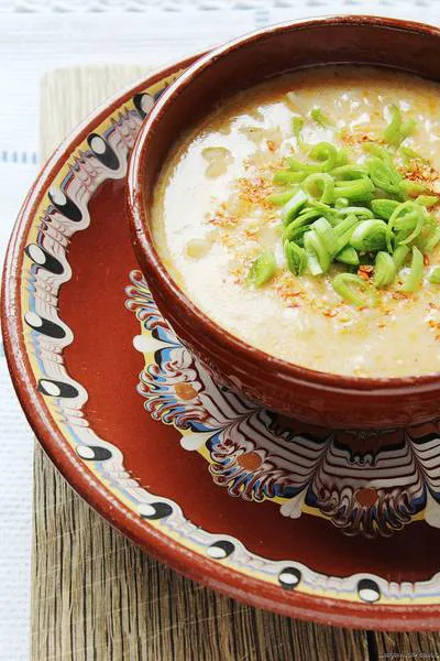 Олиото се сгорещява и в него се задушават картофите на кубчета и праза.Като омекнат се добавя зелето и кочана от зелката нарязан на ситни кубчета.Добавя се ориза,да стане кристален.Прибавят се подправките,разбърква се добре и се наливат течностите.Вари се до готовност. Застройва се.Разбиваме млякото,яйцето и брашното.Темперираме и разреждаме с бульон от супата.Изливаме отново в супата,разбъркваме и изключваме котлона.При сервиране се добавя праз, нарязан на шайбички и лют пипер по желание.