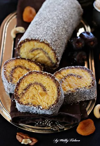 Кокосово руло с орехи, фурми и сушени кайсии