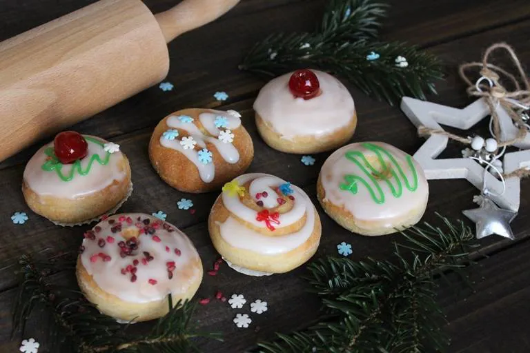 Може да се изпекат върху хартия за печене на 200 градуса, в предварително загрята фурна за около 20 минути. Може да се изпържат на маслена баня, в предварително загрято олио. (Тези са печени) След като са готови се пълнят с мармалад, шоколад или друго, или пък се покриват с глазура и шоколад, захарни декорации, поръсват се с пудра захар.