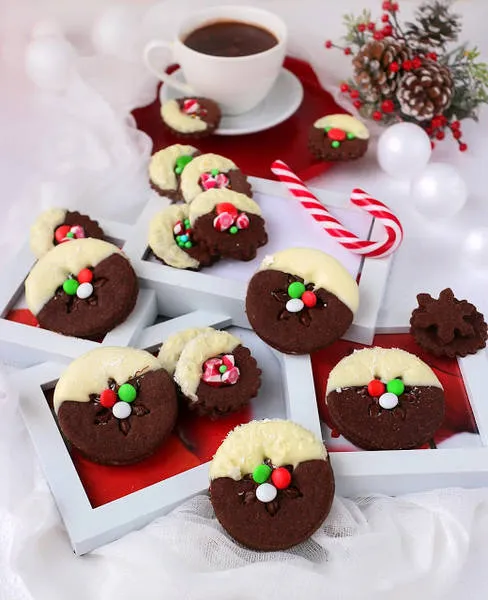 Класиката на линцер сладките сега е с нов прочит: шоколадови линцер сандвичи, слепени с ганаш, частична глазура от бял шоколад и цветни мотиви в червено, зелено и бяло