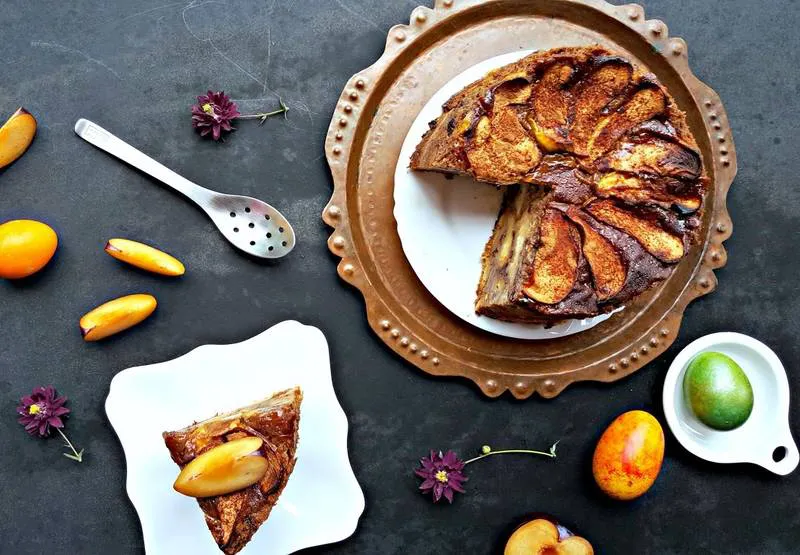 - 1/2 ябълка или няколко сливи за декорация