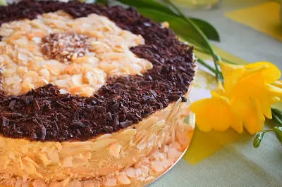 С удачното съчетаване на ароматите от козунака и тези от крема, със сочните блатове и кадифения вкус на крема, заедно с бадемите и шоколада, се получи една изключително вкусна торта.