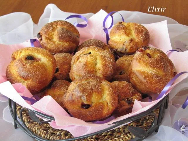 Козуначени мъфини с вишнево сладко и сушени боровинки