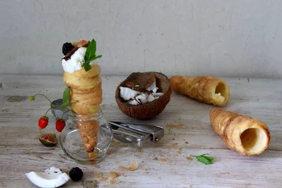 Унгарско козуначено коминче със сладолед / Kürtőskalács fagyi Любими са тези коминчета