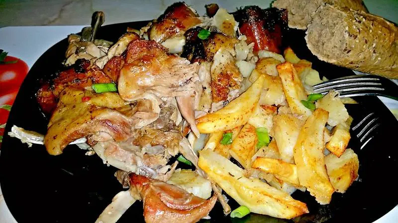 Парче агнешко, изпечено с подправки, малко картофки, но вкусът е уникален