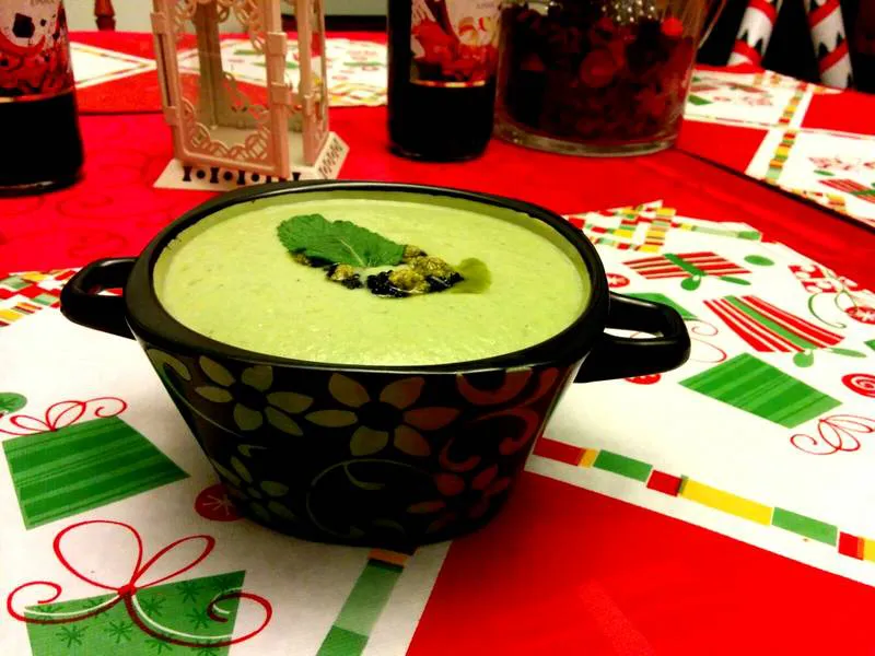 - босилеково песто и стръкче свежа мента за декорация по желание