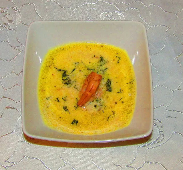 От скаридите отделям няколко за украса, а останалите нарязвам на парченца и прибавям към бульона.