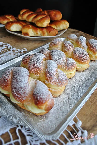 Изкючително пухкави домашни кифлички с пълнеж от плътен, ванилов крем