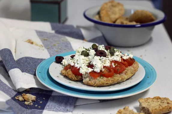 Κρητικός ντάκος/ Kritikos ntakos - вкусни сандвичи със сухари и сирене фета