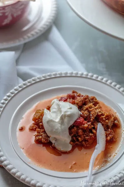 Сочен, сладко-кисел десерт в сезона на ревена.