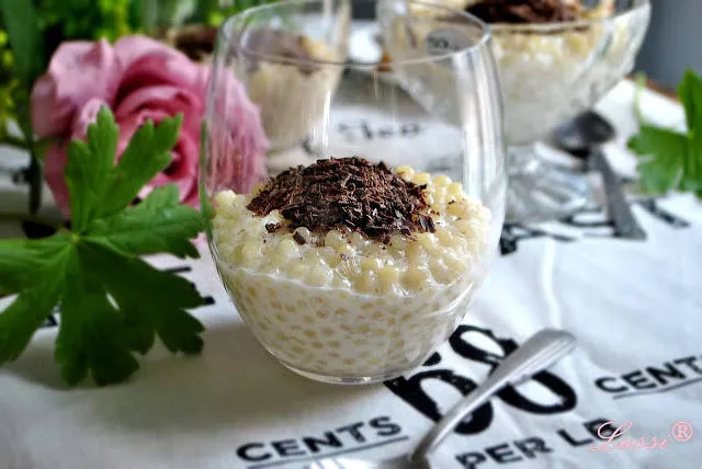 Разпределих го в чаши и го оставих да изстине напълно. Едва след това декорирах с малко рендосан черен шоколад, който след разбъркването в студения десерт стана точно като любимата ми страчатела