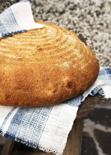 Рецепта за вкусен, здравословен и засищащ хляб с пълнозърнесто пшенично брашно, ръжена закваска, тиквено семе и орехи.