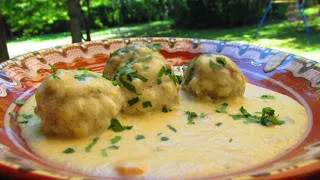Кюфтета с бял сос от кисело мляко и яйца