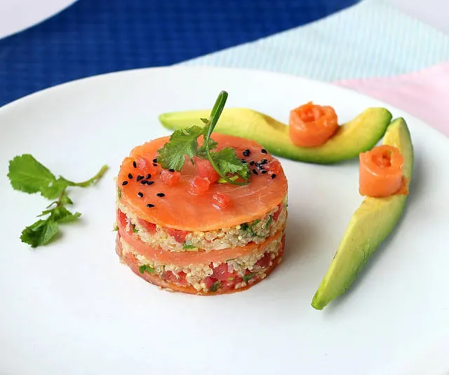 Лазаня от пушена сьомга и табули с киноа