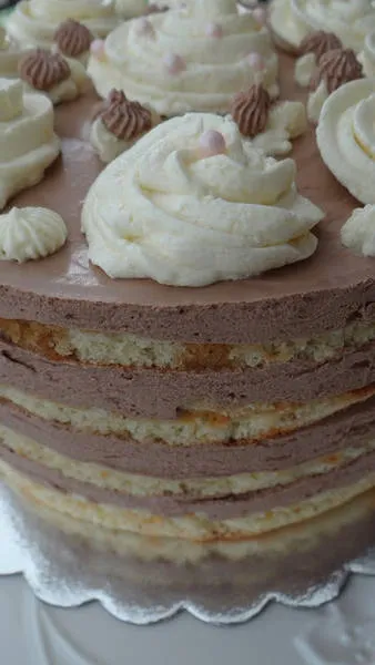 Много лешници, малко карамел и за финал украса от сметана смесена с бял шоколад .