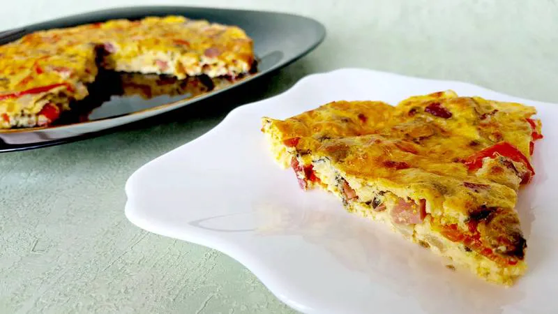 Бъркани яйца на фурна с кисело мляко и зеленчуци