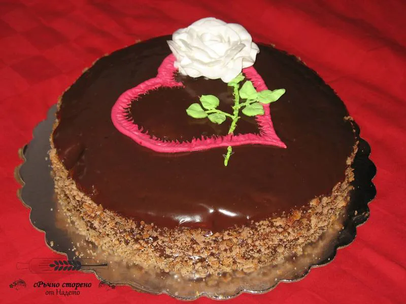 - Ако са останали изрезки от краищата, се натрошават на ситно и с тях се прави бордюр на тортата. Отгоре по желание може да се доукраси със сметана