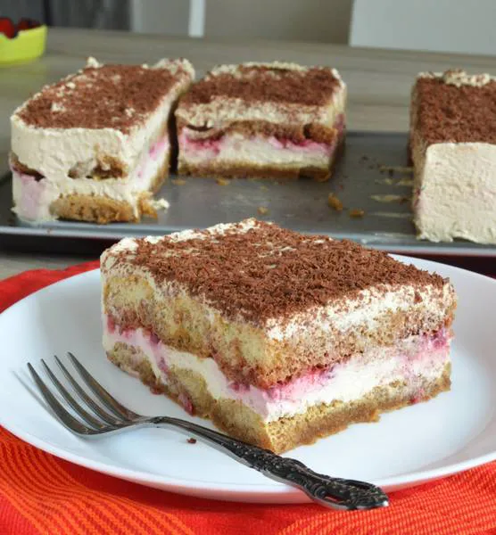 Магическа комбинация от бишкоти напоени със силно кафе с лек аромат на алкохол, и разбира се крема с маскарпоне, поръсен с какао или шоколадови стърготини, а за разкош и едни нахвърляни измежду всичкото това малини.