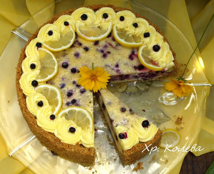 Лимоново-боровинков чийзкейк