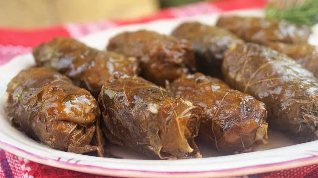 Лозови сармички в глинен гювеч