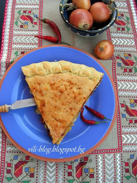 Меко и пухкаво тесто, обвило сочна, вкусна и ароматна лучена плънка.
