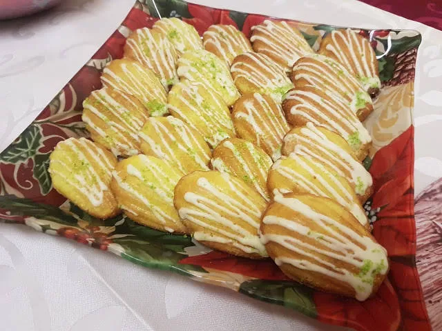 Brown butter almond Madeleines По желание украсете с бял шоколад и поръсете с шам фъстък или кокос.