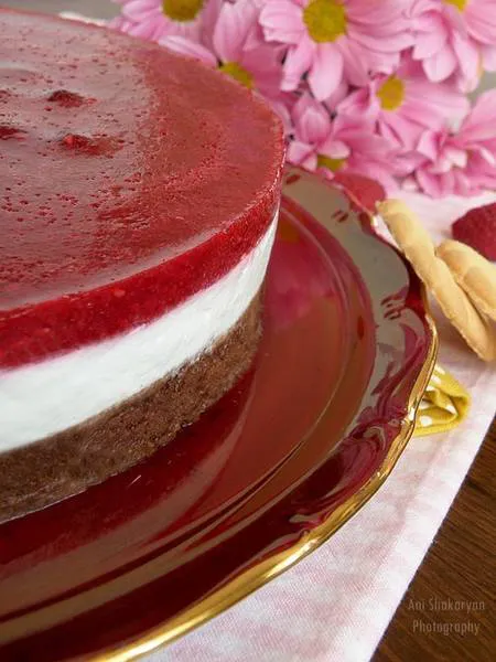 Аз пристигам с ново лятно, кулинарно вдъхновение. :) Представете си вълшебната комбинация от хрупкав, шоколадово-бисквитен блат, нежен ментов, чийз крем и малиново желе..уверявам Ви, че няма да можете да й устоите. Кремът не се пече, единствено бисквитената подложка се запича за 10 минути за повече хрупкавост.