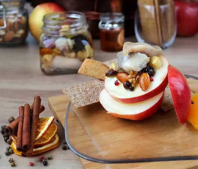 Получи се интересна комбинация със сладко солен пикантен вкус, омекотен и смекчен вкус на риба. Нетрадиционно, но хармонично съчетание в характерните коледни аромати.