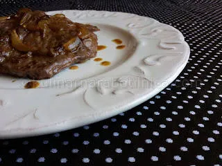 Мариновани телешки пържоли с червен лук