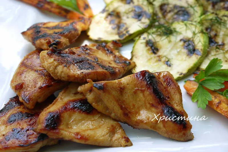 Мариновано пилешко филе с гриловани зеленчуци