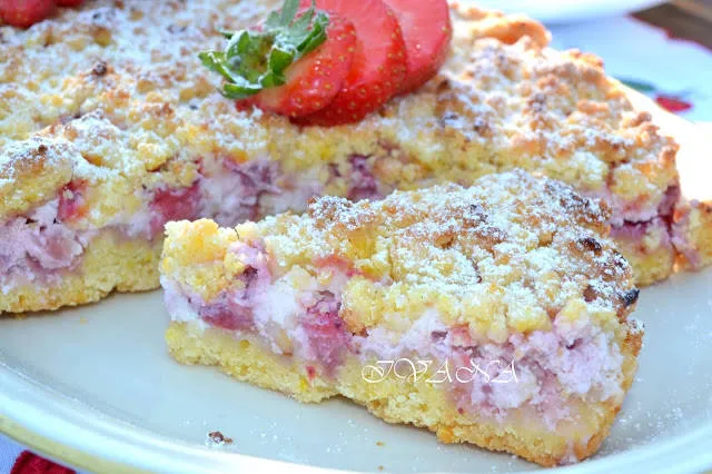 Sbriciolata ricotta e fragole Хрупкав от маслените трохи с мек, ароматен крем от рикота и ягоди този сладкиш ще ви хареса от първата хапка.